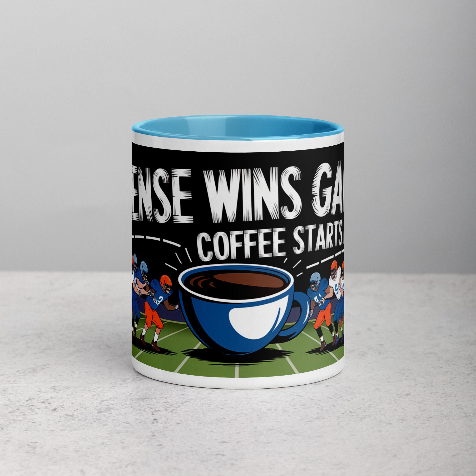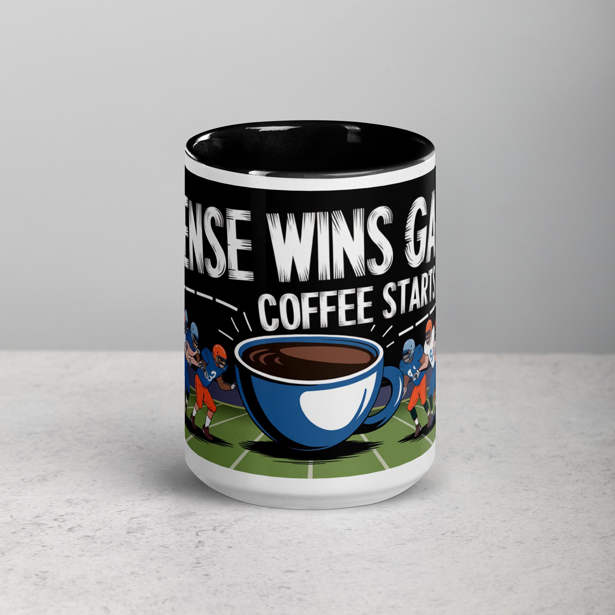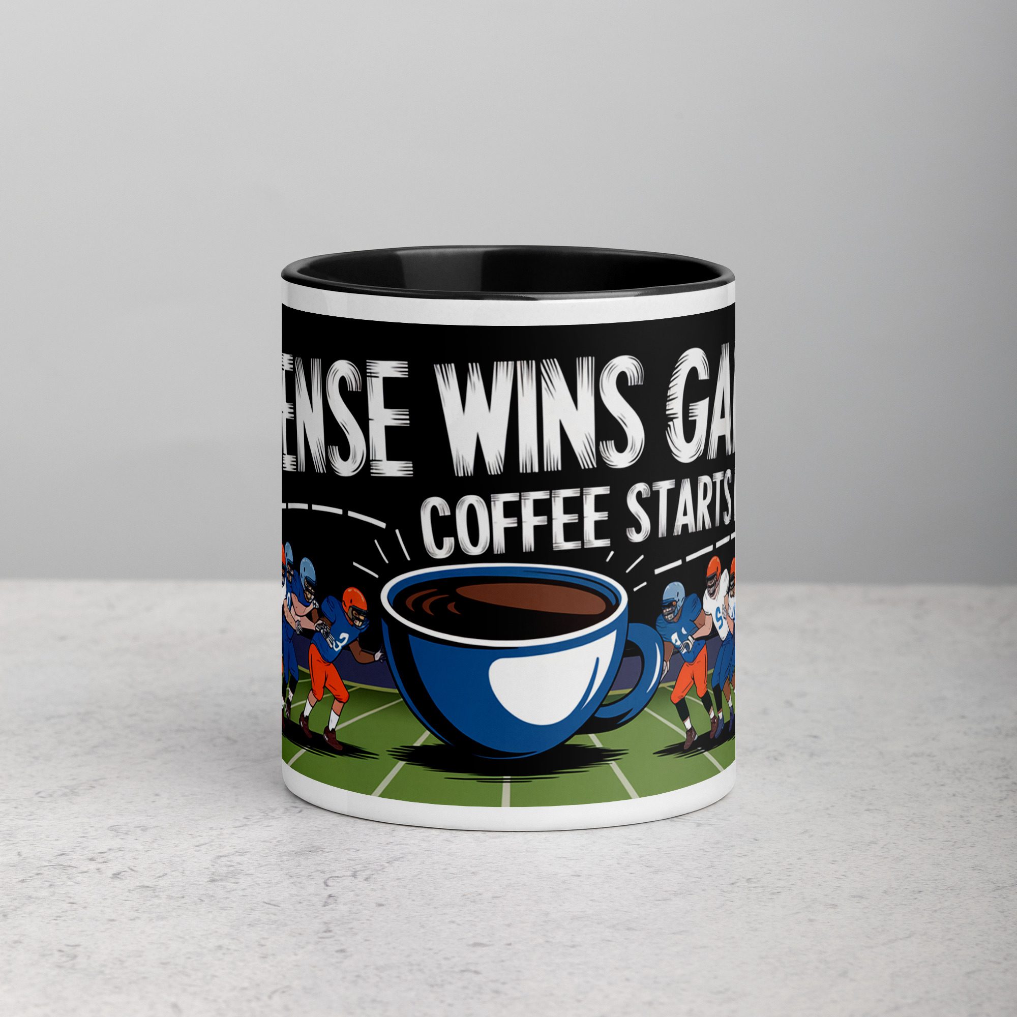 Defense Wins Games, Coffee Starts Days Football Mug