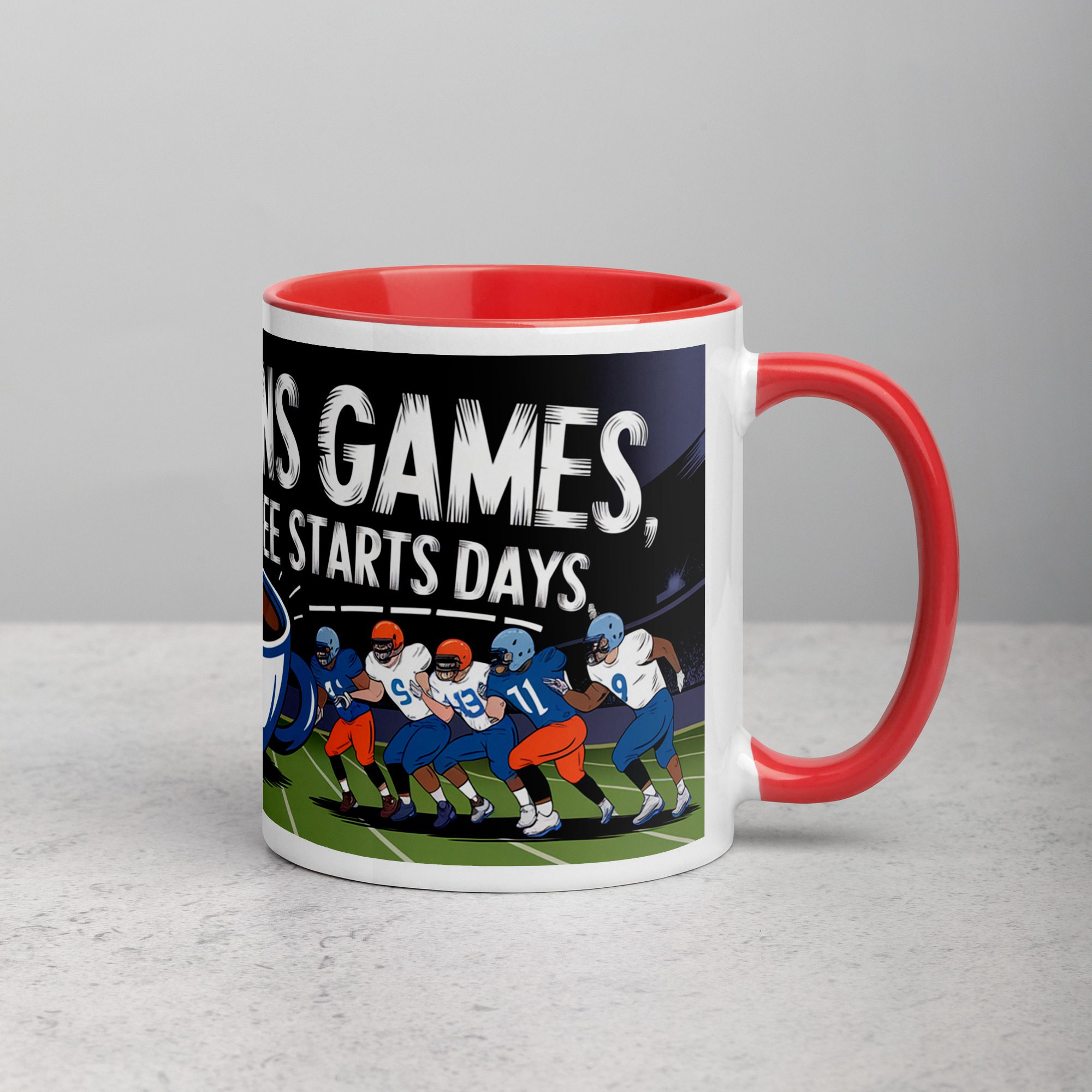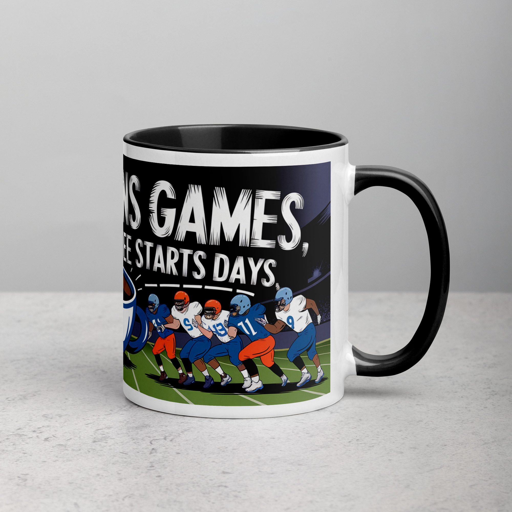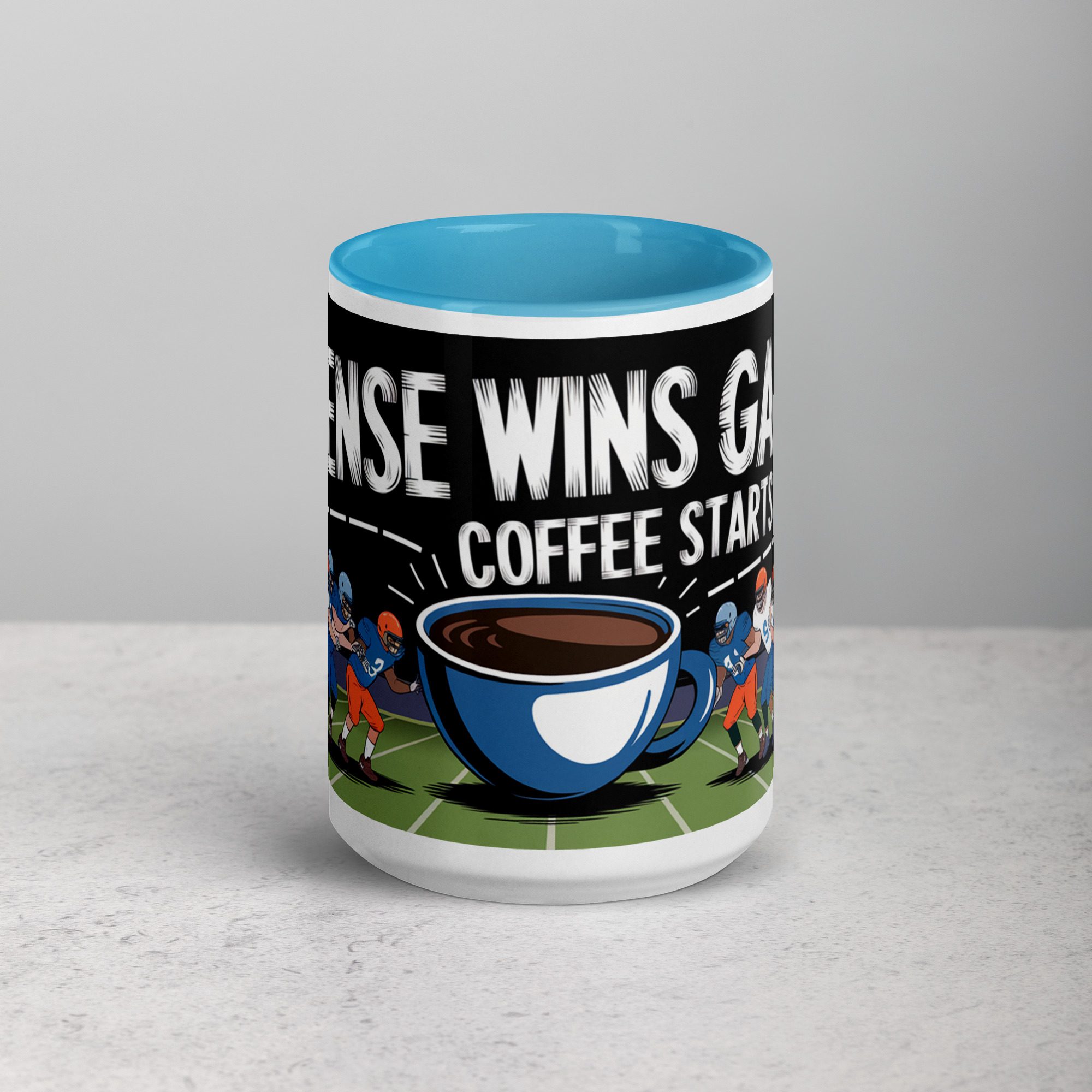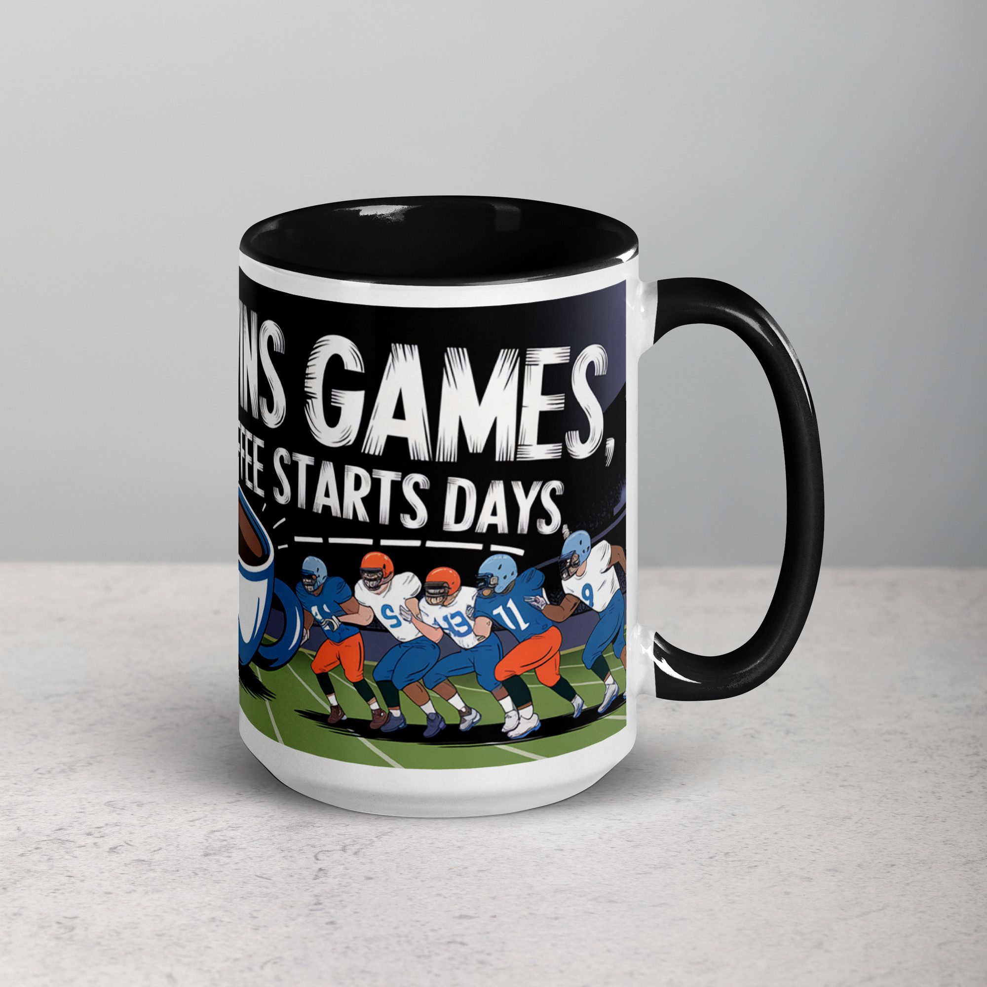Defense Wins Games, Coffee Starts Days Football Mug