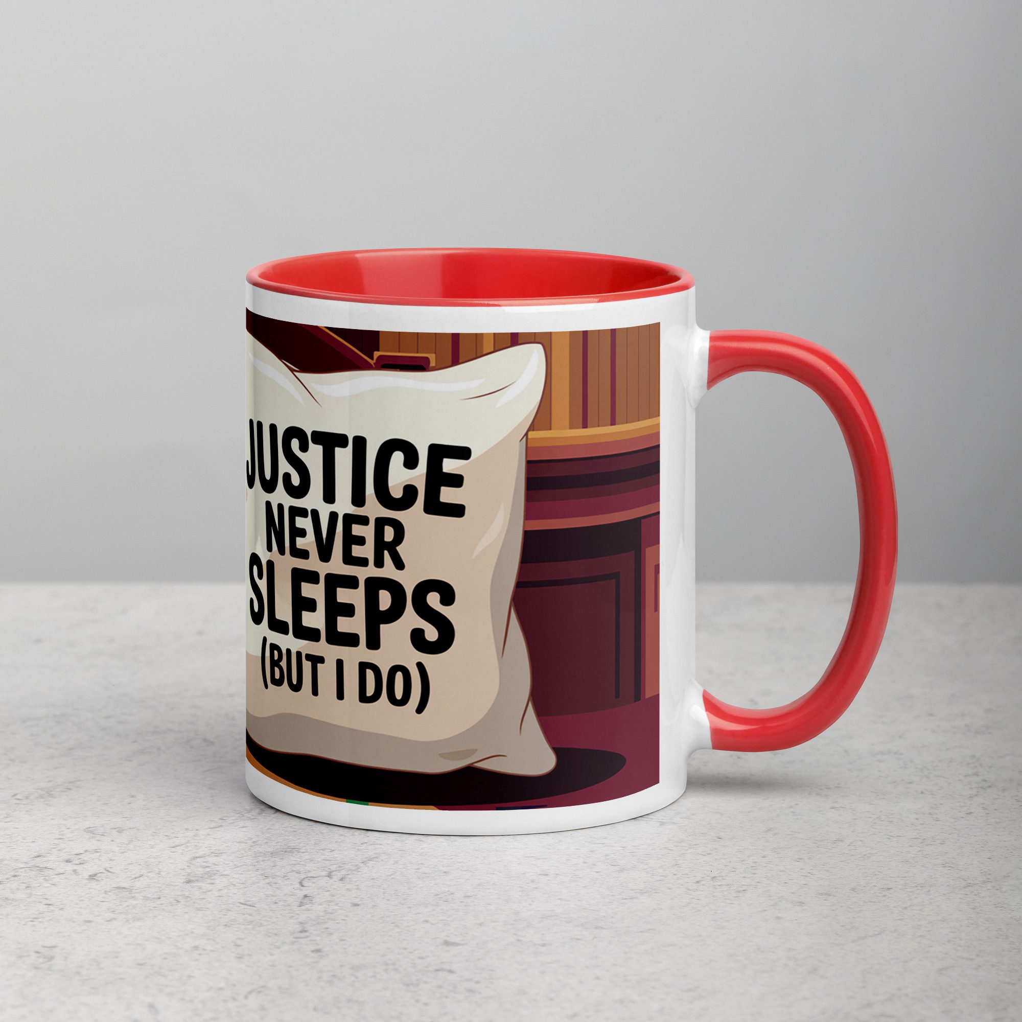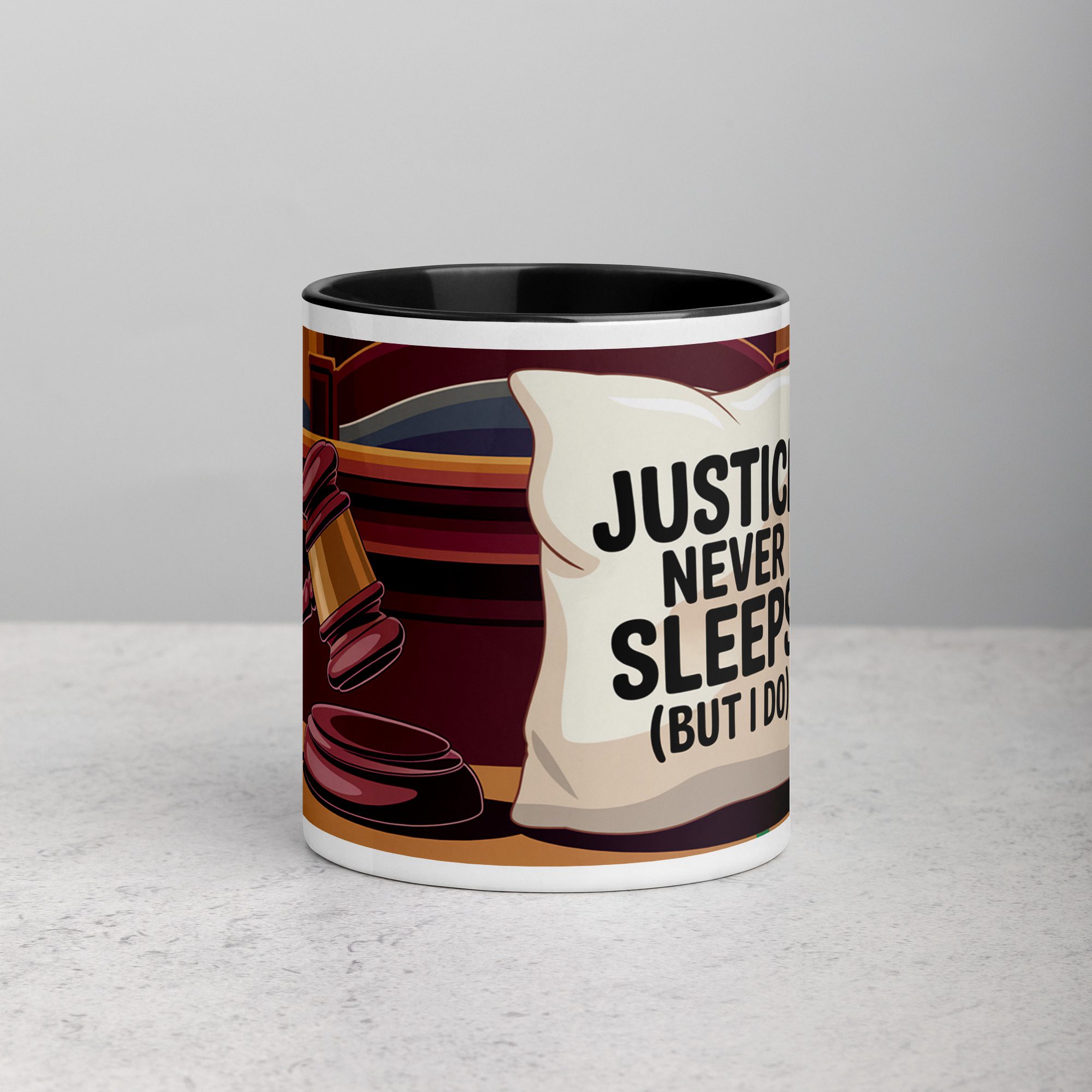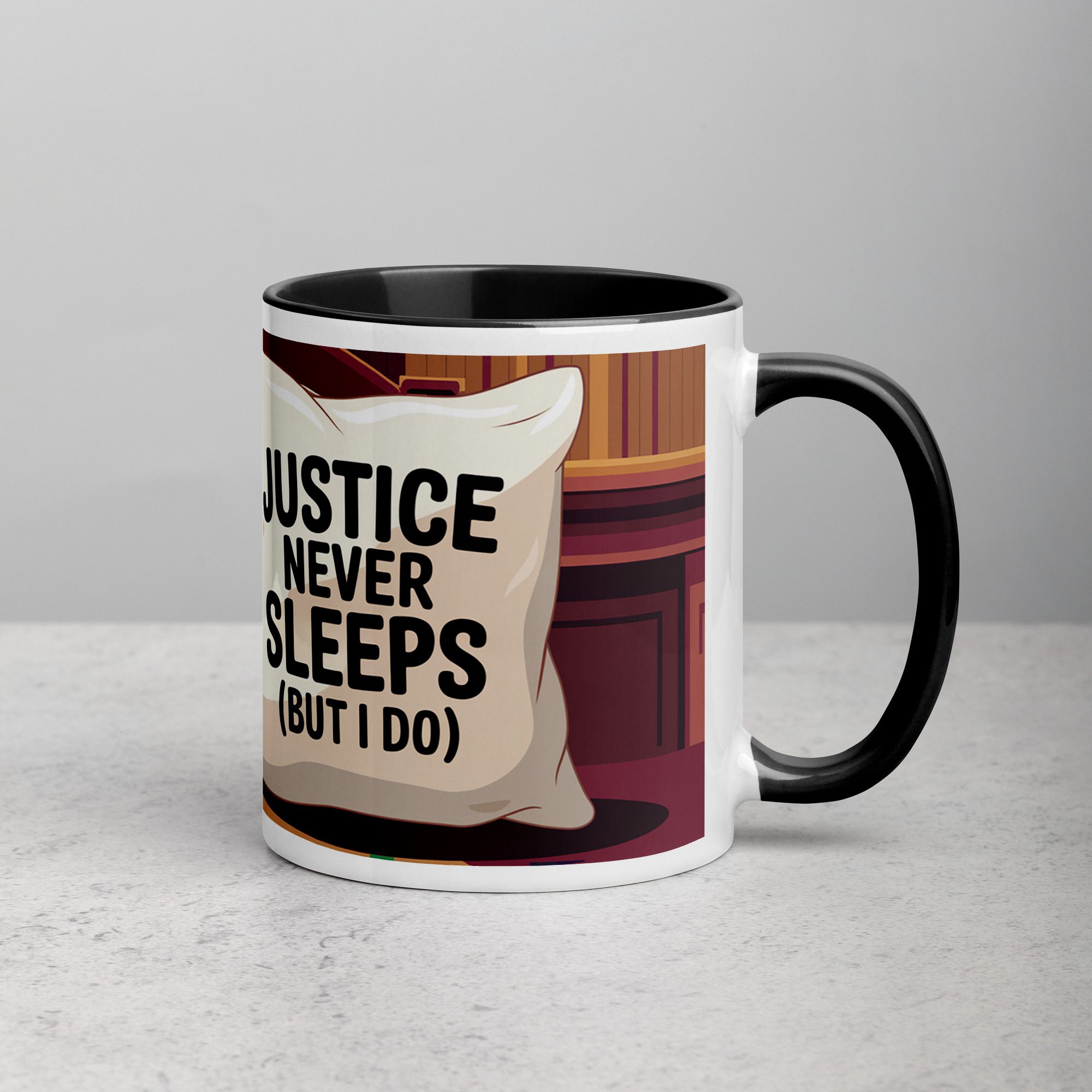 Justice Never Sleeps (But I Do) Lawyer Coffee Mug