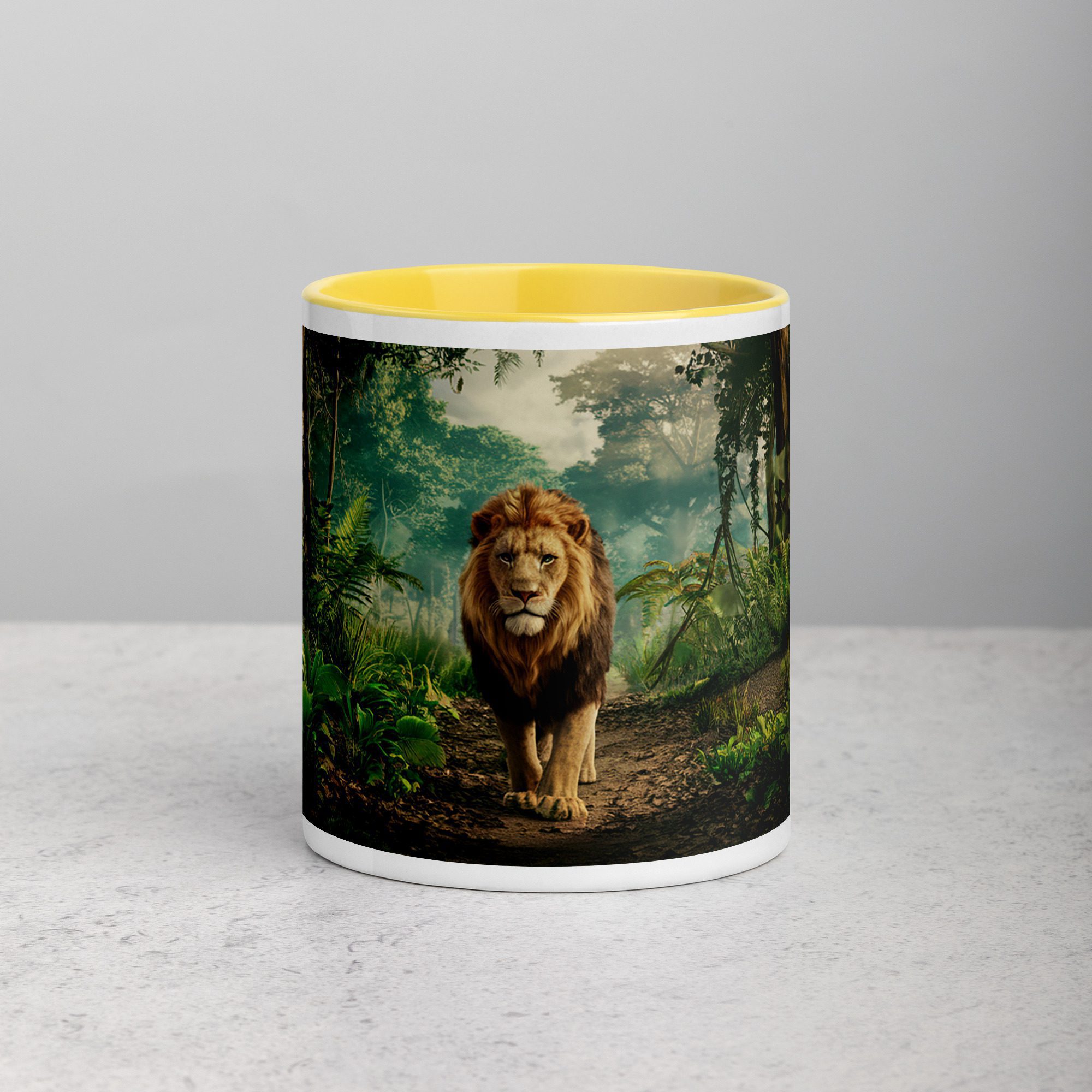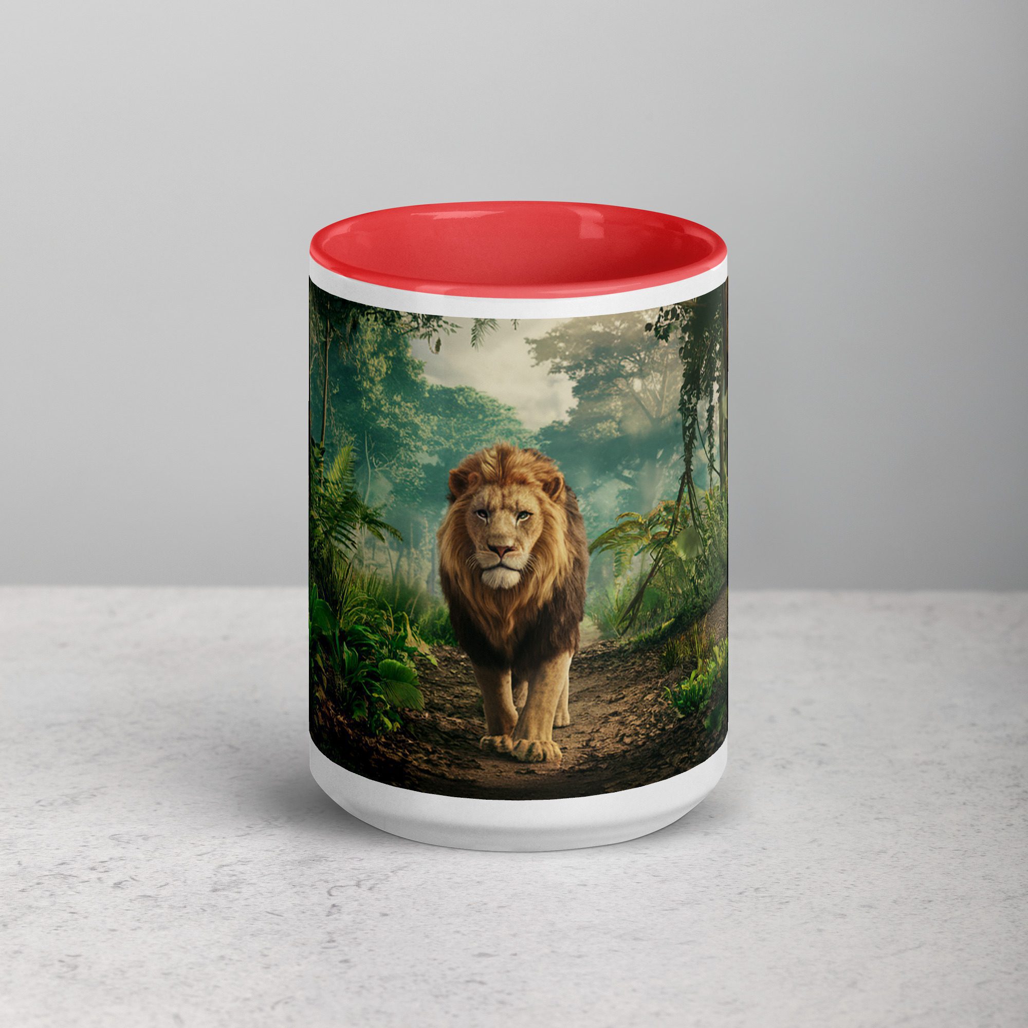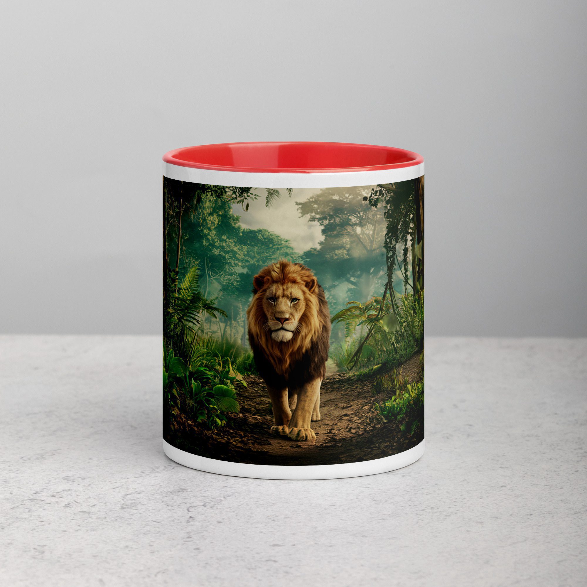 Majestic Lion Walking Through Jungle Mug