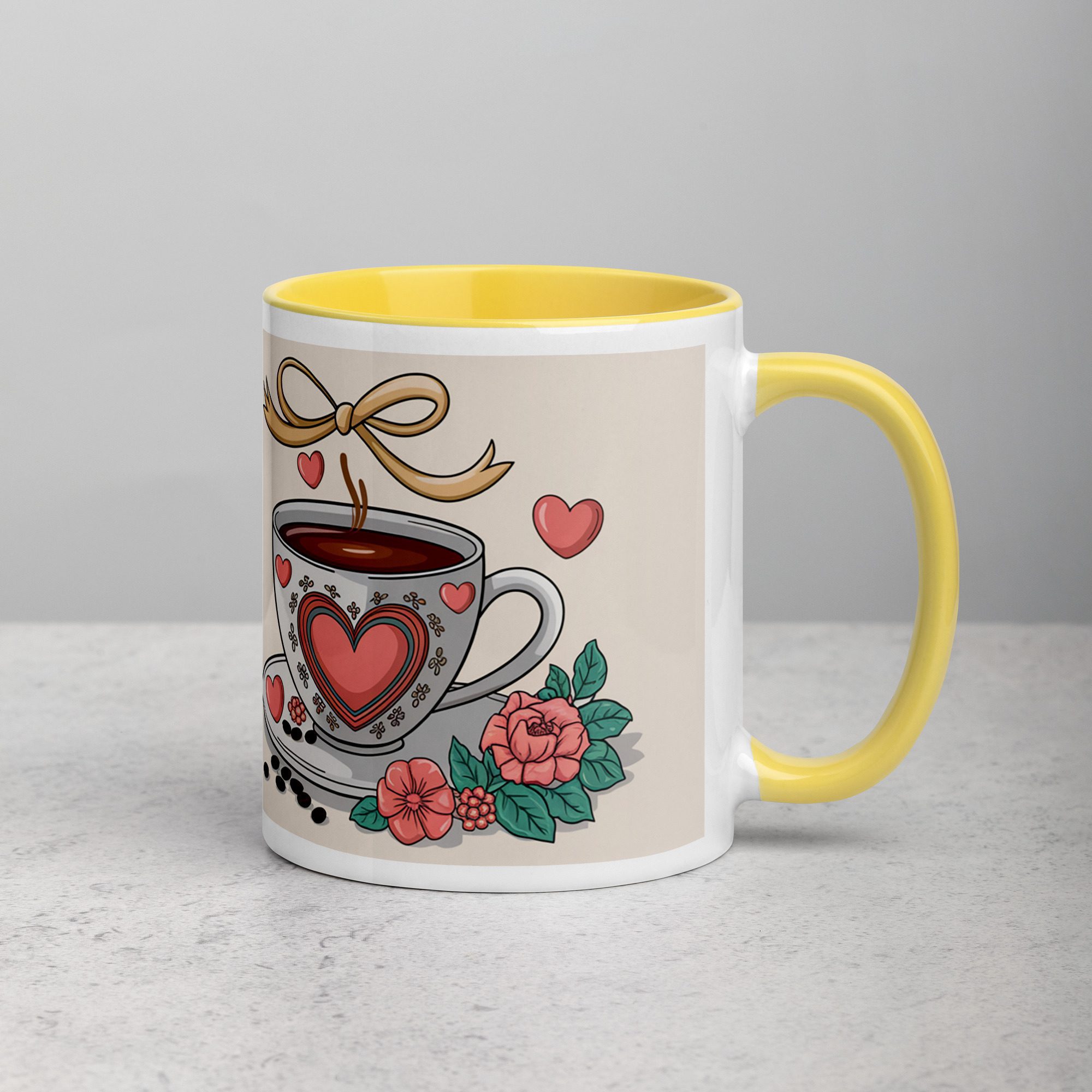 Add a splash of color to your morning coffee or tea ritual! These ceramic mugs not only have a beautiful design on them, but also a colorful rim, handle, and inside, so the mug is bound to spice up your mug rack.